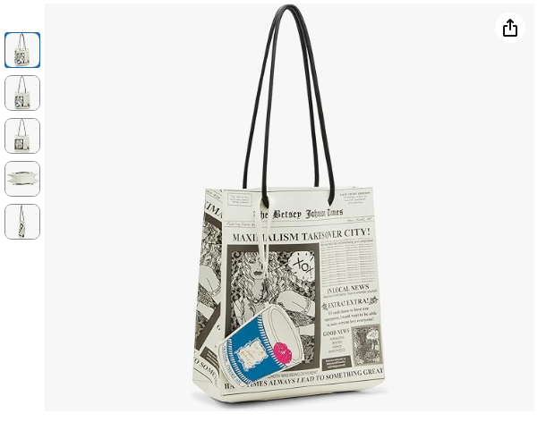 Betsey Johnson Tabloid Tote, Black/White